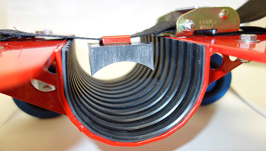 2"(5 cm) wide belt & cam buckle fitted with a polyurethane Skid retainer to maintain skid alignment when lifting skid off ground. |