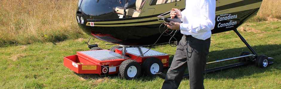 The V600 series are operated with a joystick. This high quality unit works in tandem with the controller located inside the tow cart. Together this joystick and controller offer great precision. A true pleasure to operate. In addition to controlling direction, the joystick allows to adjust speed and informs operator of battery charger level. It also offers trouble shooting guidance. The joystick being linked to the tow cart by cord ensures the operator keeps physical contact with the machine and thus acts as a safety warning against unfortunate distractions while handling helicopters.